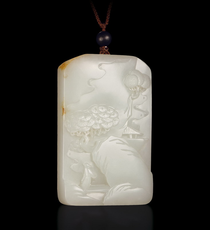 此牌由和田玉籽料雕就,選材精湛,玉質(zhì)油潤細膩,另面保留了原生的天然金皮,十分難得。利用淺浮雕和陰刻雕琢兩只金魚,栩栩如生,生動可愛。工白相應(yīng)間,既可賞玉料皮色之潤美,又可品鑒雕刻工藝之精湛,實為難得再造之神品。