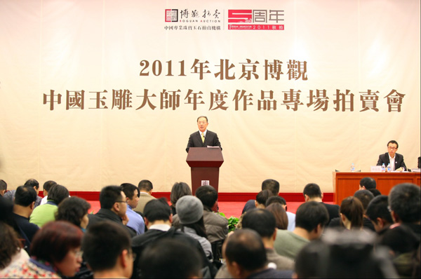 本次秋拍現(xiàn)場人氣旺盛,眾多拍品搶眼。此次秋拍博觀拍賣向廣大藏家呈現(xiàn)了十位中國玉石雕刻大師的藝術(shù)珍品,受到了藏家廣泛關(guān)注和支持,很多專場拍賣競拍過程中出現(xiàn)了非常熱烈競拍的場面,令參拍者感到驚喜和鼓舞。從現(xiàn)場拍賣情況觀察,市場表現(xiàn)更趨理性,藏家更趨成熟,更加關(guān)注藝術(shù)本身內(nèi)在的價值,相信整個玉雕藝術(shù)品市場會以更加穩(wěn)健的態(tài)勢向前發(fā)展。
